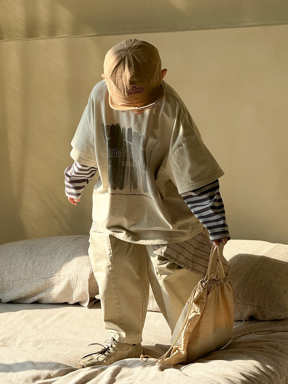 ニュアンスカラーなbeigeに黒とグレーのボーダーがとっても可愛い。